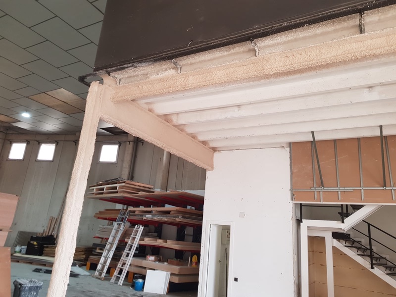 Ignifugación con mortero de perlita en estructura metálica en Barcelona